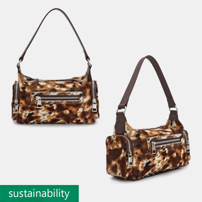 The shoulder bag features a classic best-selling shape, made of a combination of faux horsehair texture material and PU,
